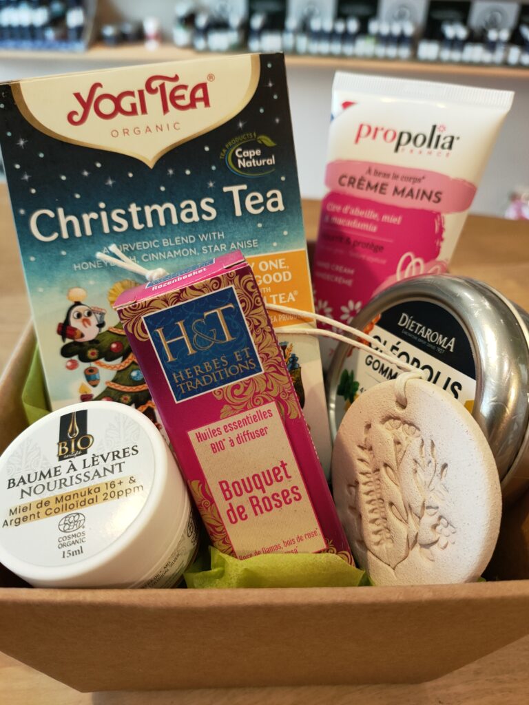 Une huile essentielle d’orange douce et de vanille, présentée dans une jolie boîte, avec quatre recettes festives de chefs.